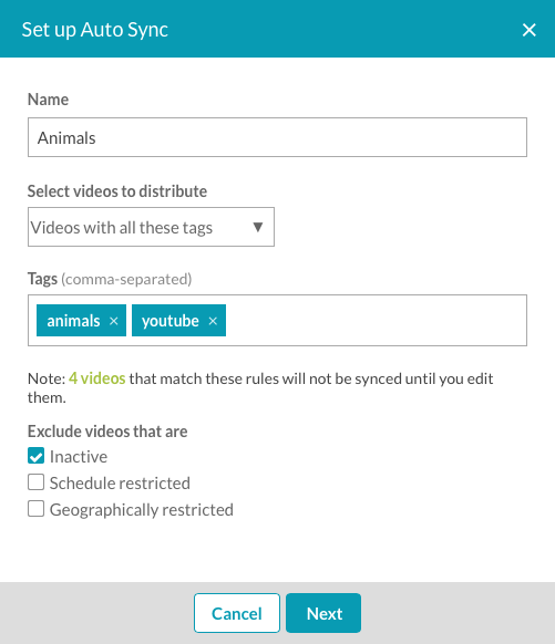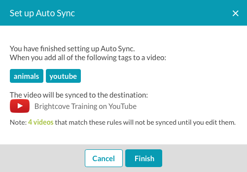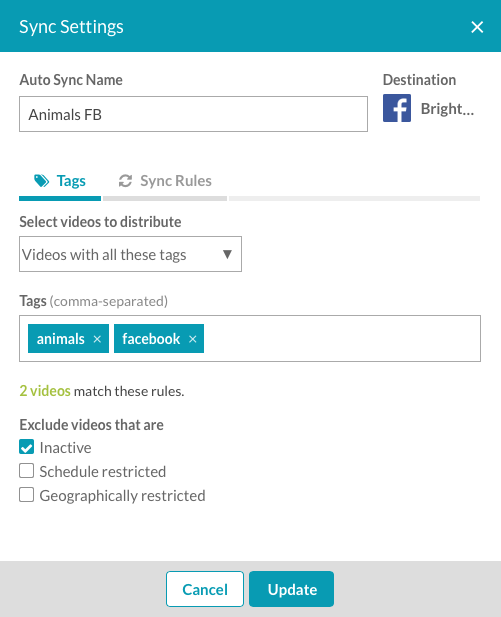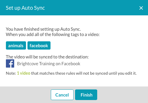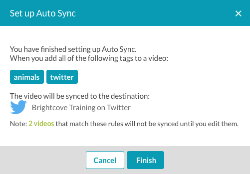 Brightcove Social 提供自動同步功能,可根據與影片相關聯的標籤,自動將影片同步至社交媒體頻道。